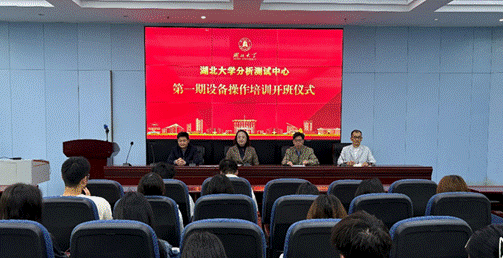 2026年4月8日上午,湖北大学分析测试中心第一期分析测试设备上机操作培训开班仪式在中心二楼报告厅举行。来自化学化工学院、材料科学与工程学院、健康科学与工程学院、生命科学学院、物理学院、智能制造学院等单位的50余名硕士、博士研究生分别在线上、线下参加开班仪式和培训。